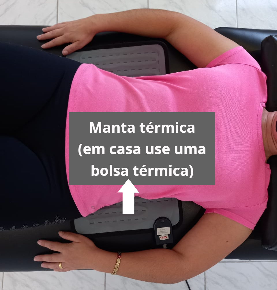 No caso da dor na cervical, podemos colocar uma toalha de rosto enrolada e uma bolsinha de água quente sob a região (qualquer forma de calor superficial serve, só tomar cuidado para não produzir queimaduras da pele, ok?)